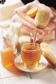 2. Body glow bath: To moisturize, smooth, and get an all over body glow, keep a jar of honey next to your bath. Apply honey on your skin and pat dry using both hands. While patting your skin, the honey will get sticky and gently pull up your skin. Rinse away the honey when you are done. The results will be great circulation and beautiful, glowing skin!